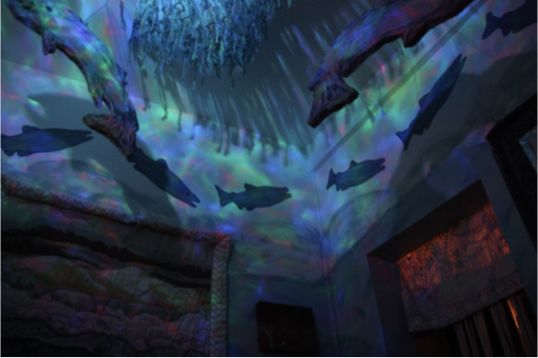 In addition to clothes, if you look for it, you can find a secret art exhibit in the St. John’s location. The medium is quilts, made by the founding twins’ grandmother. They feature salmon, and the whole exhibit has a very calming effect on the viewer, while still making a subtle statement on the situation in Oregon’s rivers where salmon migratory routes have been blocked by hydroelectric dams.